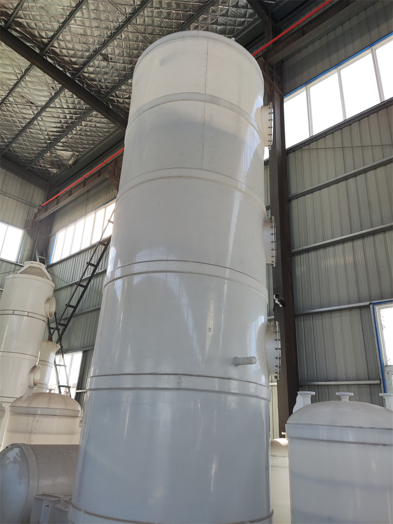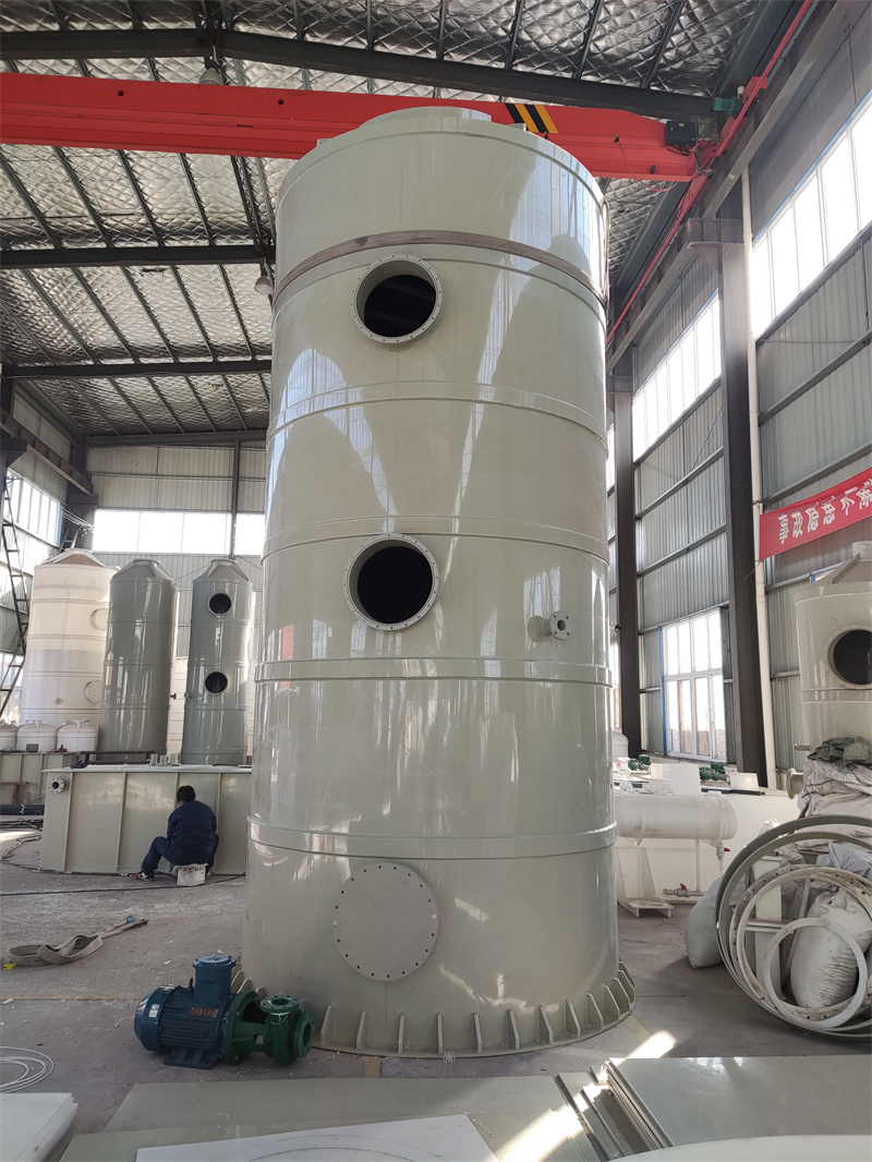 層廢氣與噴淋液進(jìn)行氣液逆流接觸,廢氣經(jīng)過凈化后,在經(jīng)除霧層脫水除霧后排出,吸收液在塔底循環(huán)池由水泵輸送至塔頂噴淋而下,后回流至塔底循環(huán)使用。PP尾氣噴淋塔一種無毒、無味的高結(jié)晶聚合塑料塔,耐酸堿,具有佳的抗腐蝕性,耐大多數(shù)的有機(jī)、無機(jī)酸、堿鹽和部分有機(jī)溶劑,是防腐領(lǐng)域常用的材料。和很多介材質(zhì)比重量較輕,有優(yōu)良的